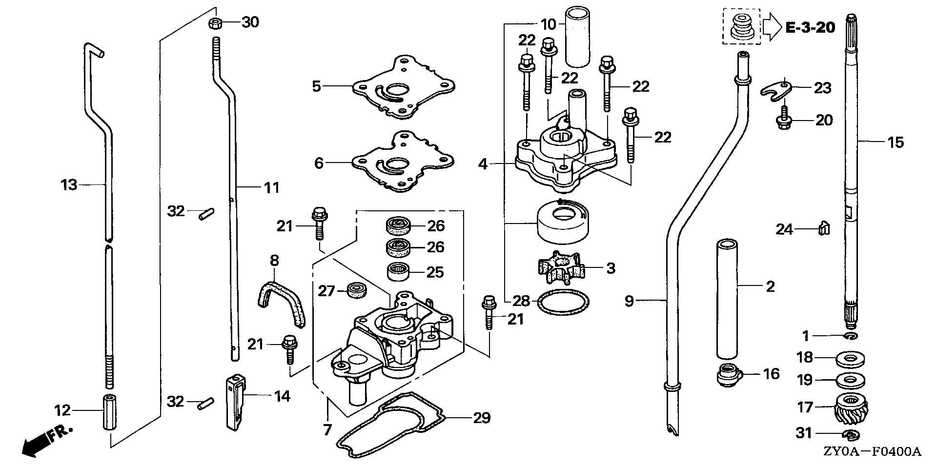 Portable Outboard Engines (2 - 20 hp) BFP BFP15 BFP15D5 LRTA BALJ-1200001-1299999 WATER PUMP@VERTICAL SHAFT (1) - Simply Outdoors
